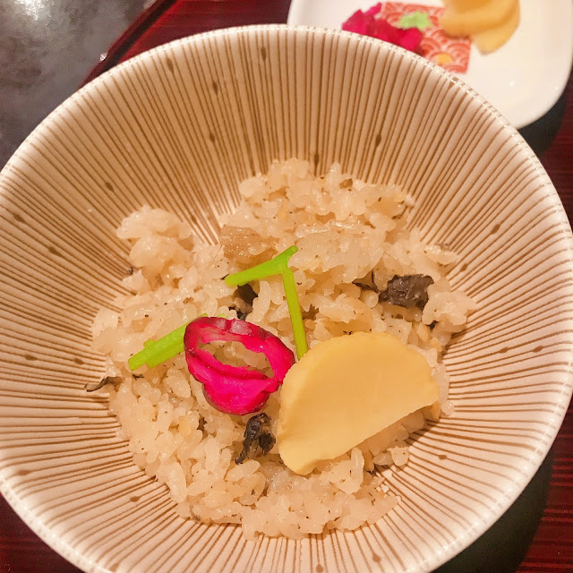 「青時雨會席」前菜、前湯、旬魚刺身、燒物、鍋、飯、甘味
