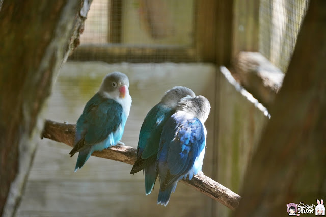 餐廳往左走下去有個鳥園,養了幾隻虎皮鸚鵡和羽衣鸚鵡。