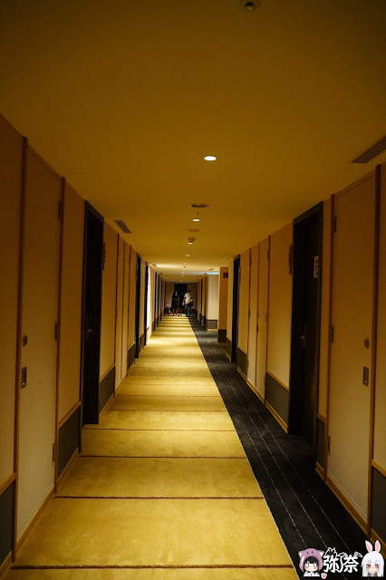 飯店客房走廊的地板是踩起來軟軟澎澎的地毯。