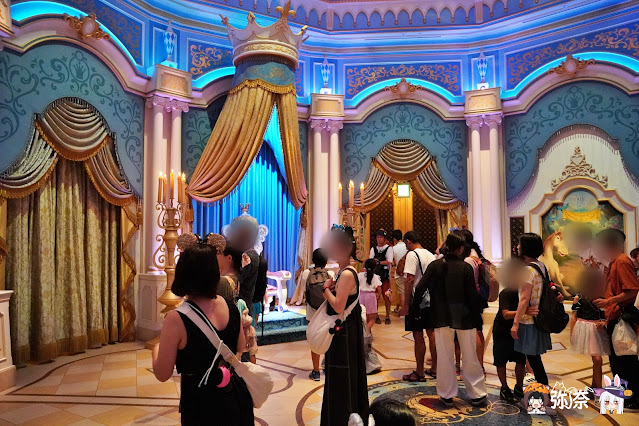 接著來到大廳這裡很多人在排隊拍照,有王座和試穿玻璃鞋的場景。